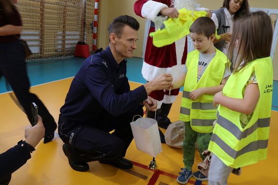 Dzisiaj, 8 grudnia 2025 roku w Zespole Szkolno-Przedszkolnym pojawił się wyjątkowy gość - „Odblaskowy Mikołaj”. W wydarzeniu uczestniczyli Pierwszy Zastępca Komendanta Powiatowego Policji w Bełchatowie oraz Wójt Gminy Bełchatów, którzy wspólnie wręczyli najmłodszym uczniom szkoły odblaski oraz kamizelki odblaskowe.
