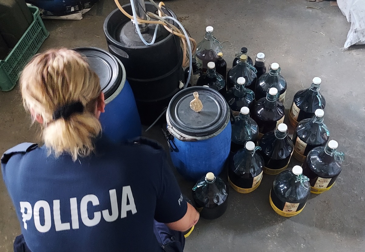 Na posesji zastali 59-letniego mężczyznę. Zaniepokojony nieoczekiwaną wizytą nieumundurowanych funkcjonariuszy został poinformowany o celu policyjnych działań. Mężczyzna przyznał, że sporadycznie zajmuje się produkcją domowych nalewek z owoców sezonowych, wykorzystując do tego własnoręcznie wytwarzany alkohol. Oświadczył, że produkuje trunek wyłącznie na własne potrzeby i w celach zdrowotnych. Funkcjonariusze przystąpili do przeszukania posesji. W jego wyniku ujawnili i zabezpieczyli:
