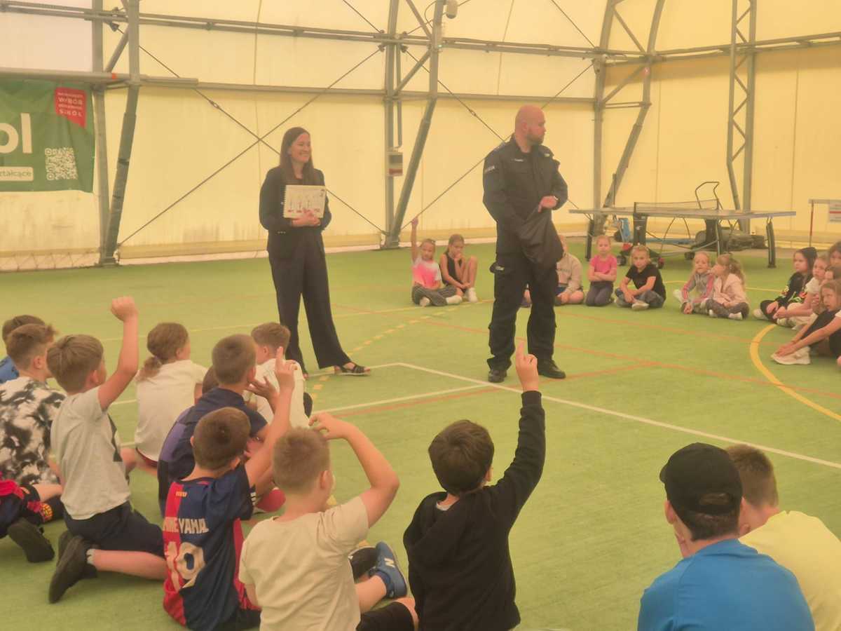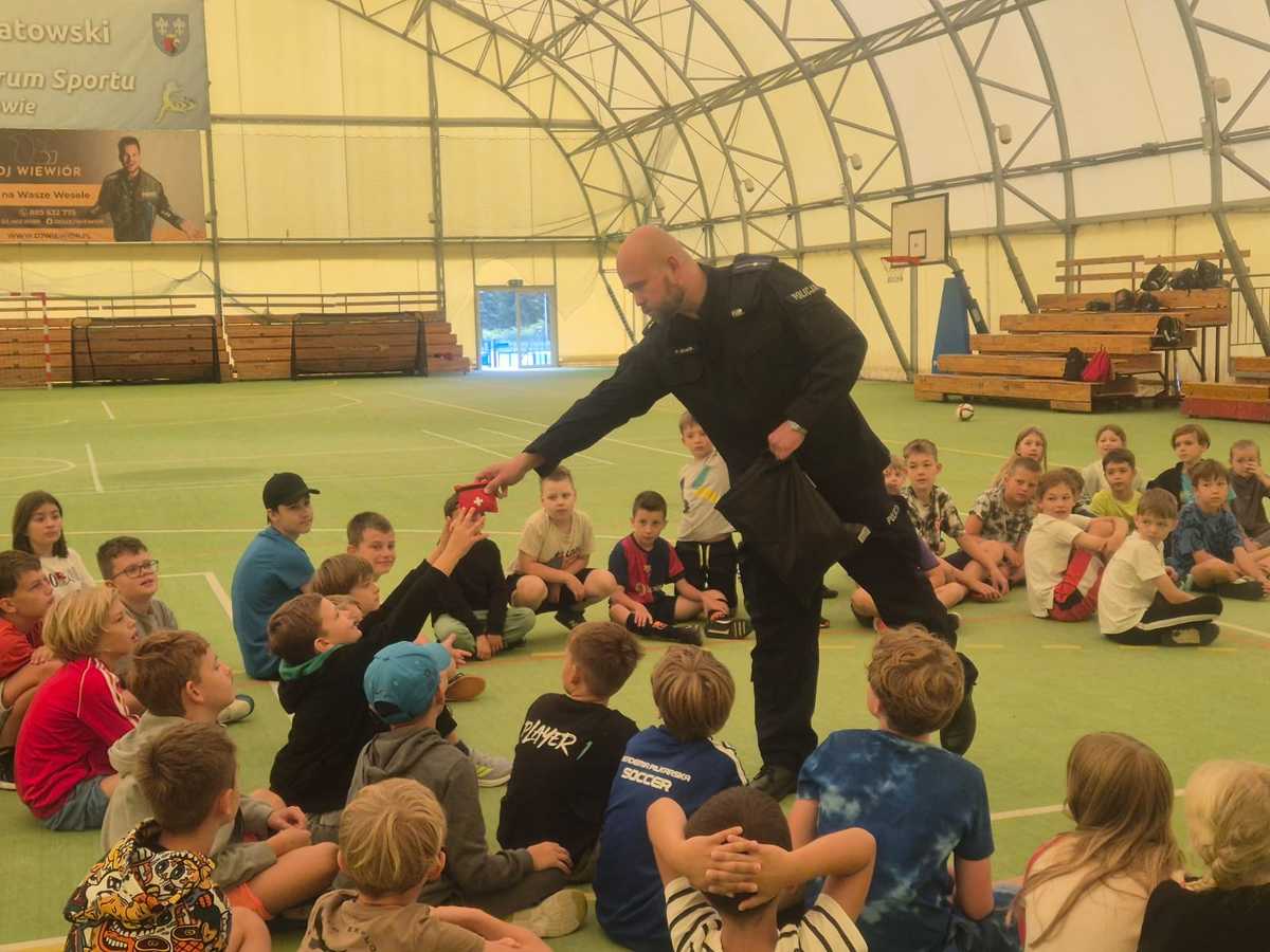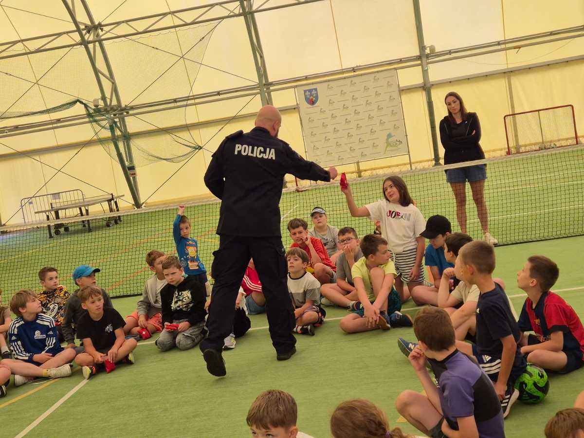 „Kręci mnie bezpieczeństwo w lecie” - policjanci z bełchatowskiej komendy odwiedzili półkolonie w Powiatowym Centrum Sportu