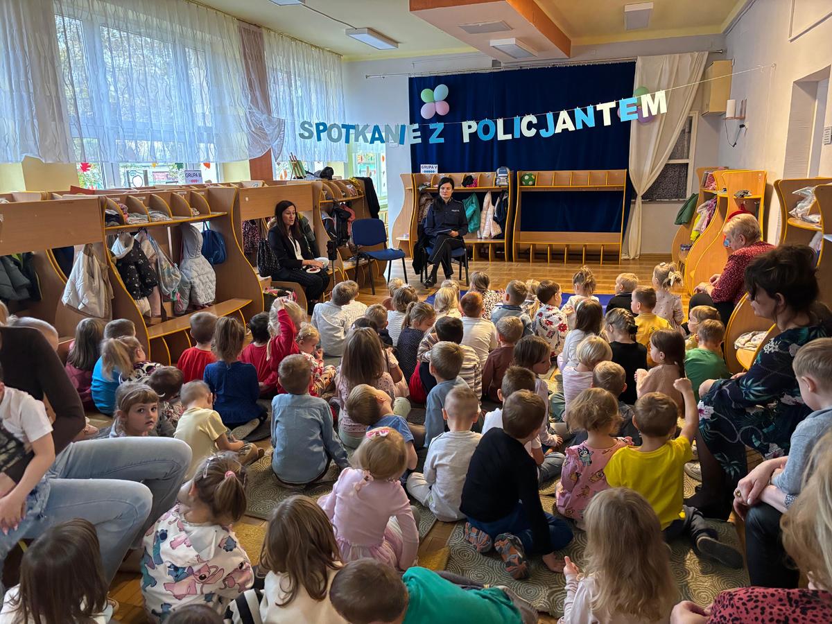 Nie zabrakło też rozmów o bezpiecznym przechodzeniu przez jezdnię, prawidłowym korzystaniu z pasów ruchu oraz roli odblasków. Dzieci słuchały z zainteresowaniem, a uśmiechy na ich twarzach były dla nas najlepszym dowodem, że takie spotkania są naprawdę potrzebne.