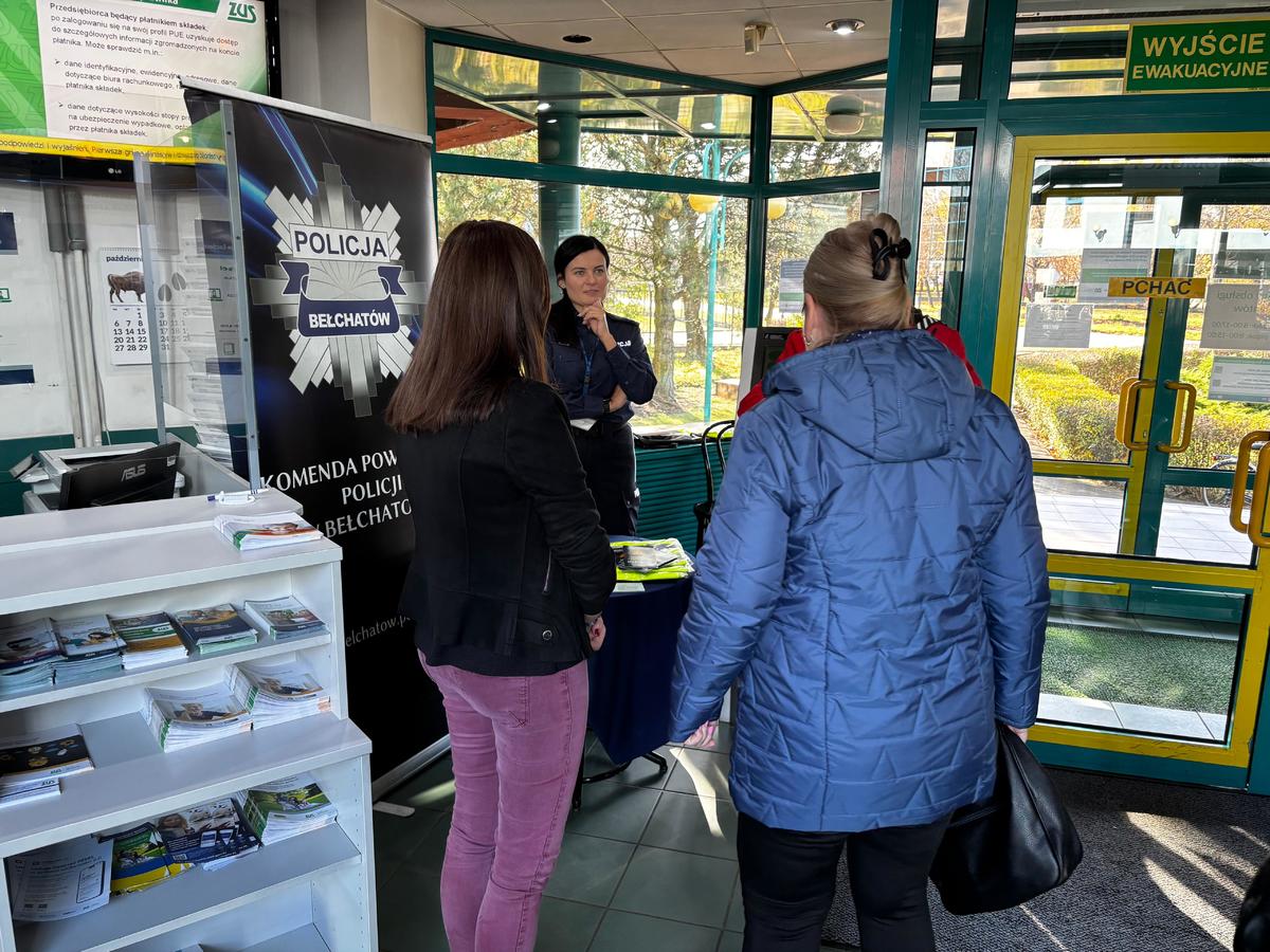 31 października 2025 roku bełchatowscy policjanci w jednostce ZUS zaprezentowali stoisko profilaktyczne, promujące akcję #ZnamTeNumery, przybliżyli zasady korzystania z Krajowej Mapy Zagrożeń Bezpieczeństwa, a także udzielili porad dotyczących unikania oszustw oraz bezpieczeństwa w codziennym życiu. Stoisko cieszyło się dużym zainteresowaniem, a rozmowy o zagrożeniach przebiegły w przyjaznej, pełnej zrozumienia atmosferze. Seniorzy chętnie opowiadali o swoich doświadczeniach i dopytywali o metodykę działania sprawców oszustw. Policjanci informowali w jaki sposób postępować, aby nie stać się ofiarą przestępstw oraz podkreślali rolę zwracania uwagi na to, komu udzielają wrażliwych informacji. Takie spotkania jasno nam pokazują, że nasze działania są potrzebne, a chęć rozmowy z policjantami i omówienie swoich doświadczeń życiowych jest ogromna.
