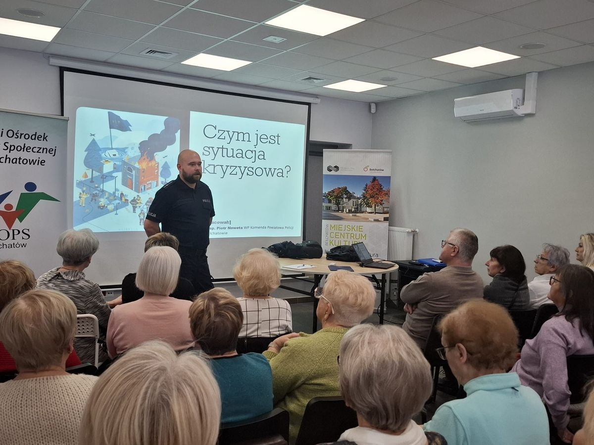 W Miejskim Centrum Kultury w Bełchatowie odbyło się spotkanie zorganizowane dla członków Fundacji Rozwoju „Nitka”, poświęcone tematyce zarządzania kryzysowego oraz bezpieczeństwa niechronionych uczestników ruchu drogowego. Prowadzący, mł. asp. Piotr Noweta z Wydziału Prewencji KPP w Bełchatowie, omówił sposoby reagowania w sytuacjach zagrożenia oraz zasady bezpiecznego poruszania się po drogach.