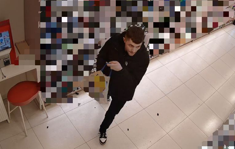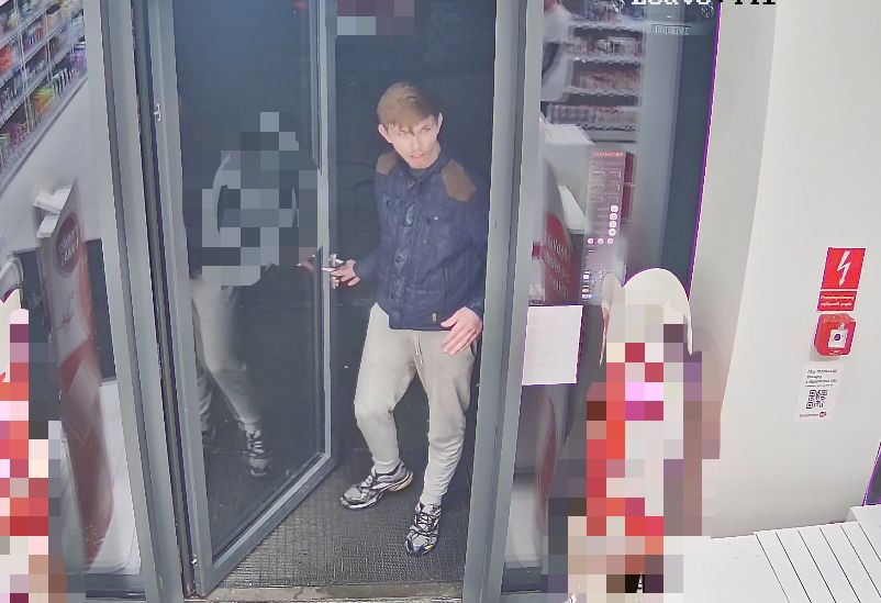 DRUGI SPRAWCA: mężczyzna w wieku około 25 lat, włosy krótkie koloru ciemny blond. W jednej drogerii ubrany w bluzę z kapturem koloru zielono-żółtego, czarną kurtkę, czarne spodnie dresowe z czerwonymi lampasami na boku oraz szare buty sportowe. W drugiej drogerii ubrany w ciemną kurtkę z brązowymi wstawkami na ramionach, szare dresowe spodnie oraz szare buty sportowe.