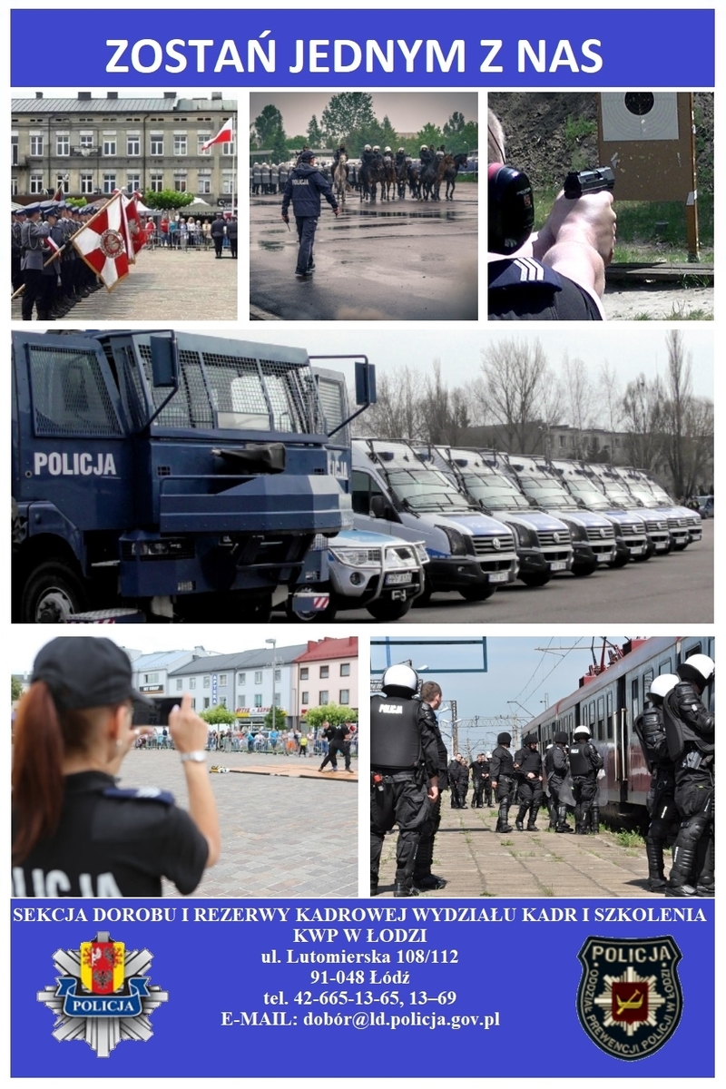 Służba w naszej formacji jest nie tylko atrakcyjna finansowo, ale przede wszystkim daje dużo satysfakcji i jest też miejscem, gdzie każdego dnia można zdobyć kolejne nowe doświadczenie, rozwijać swoje pasje i nieustannie nieść pomoc innym. Zostając policjantem, tworzysz ponad 100-tysięczną formację, pomagającą obywatelom i dbającą o bezpieczeństwo wewnętrzne kraju. To zawód dla profesjonalistów i ludzi z pasją. Dużo wymagający i dużo dający w zamian. Służba w Policji daje niepowtarzalną szansę zawodowego rozwoju. Liczna oferta szkoleń resortowych stwarza możliwość poszerzania horyzontów, zdobycia nowych umiejętności oraz pogłębiania wiedzy i doświadczenia w różnych dziedzinach. Ponadto równocześnie możesz podjąć studia zaoczne i w tym samym czasie kreować swoją przyszłość zawodową oraz podnosić swoje wykształcenie. Jeśli zdecydujesz się na wstąpienie do służby od razu po szkole średniej to pamiętaj, że wiek emerytalny zdobędziesz już w wieku 45 lat! Szczegółowe informacje dotyczące rekrutacji można uzyskać, dzwoniąc pod numer telefonu 47 846 52 18 lub 47 846 52 43.